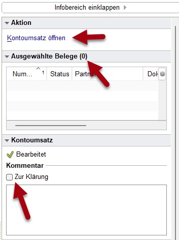 In die Belegvorschau wurde ein Quersprung zum Kontoumsatzassistenten (Aktion: Kontoumsatz öffnen) aufgenommen, damit fehlende Belege einfach und unkompliziert zugeordnet werden können.