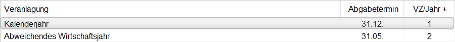 • zur Fist ist im Abschnitt Veranlagung folgendes hinterlegt