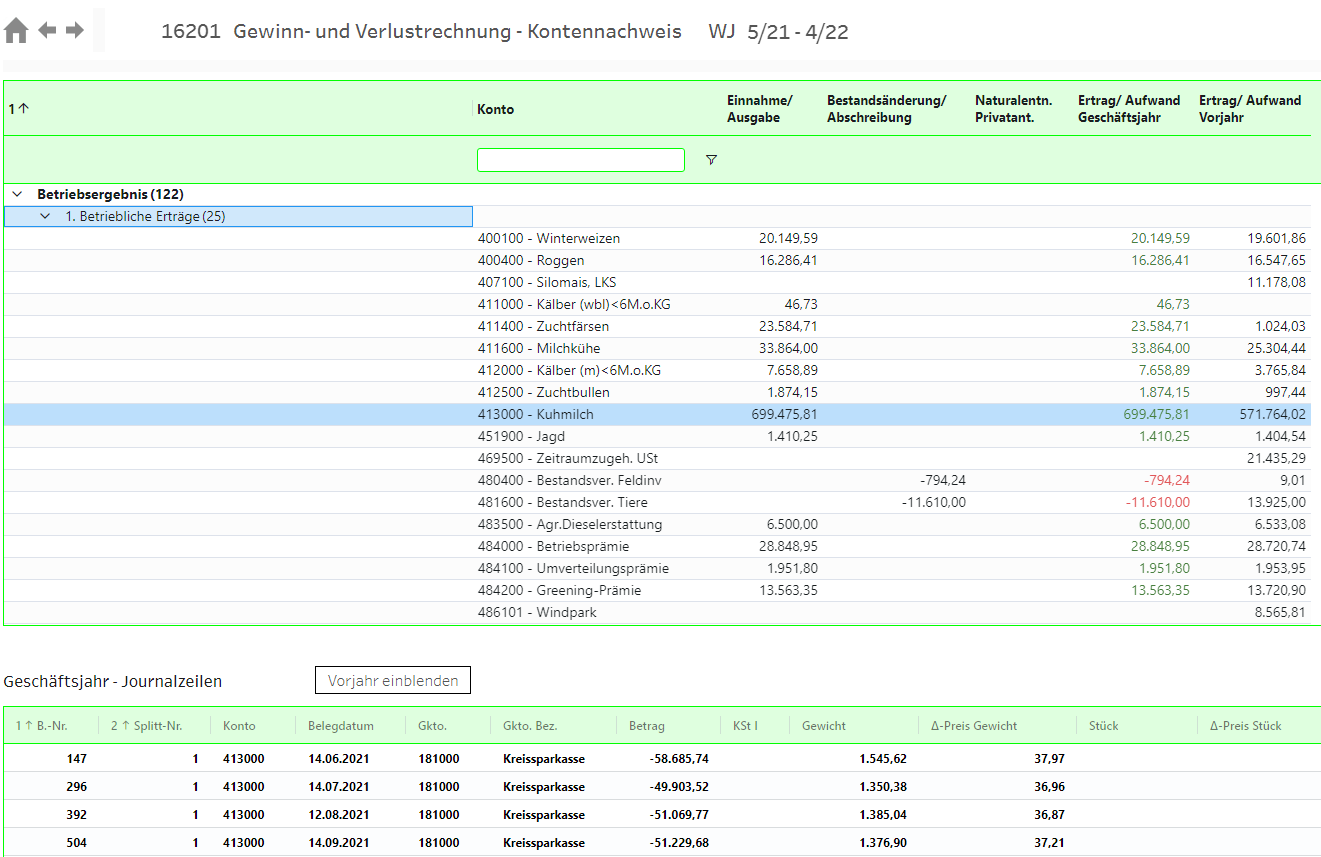 ![]() | Über die Schaltfläche Vorjahr einblenden ist die Anzeige des Vorjahres-Journals möglich. |