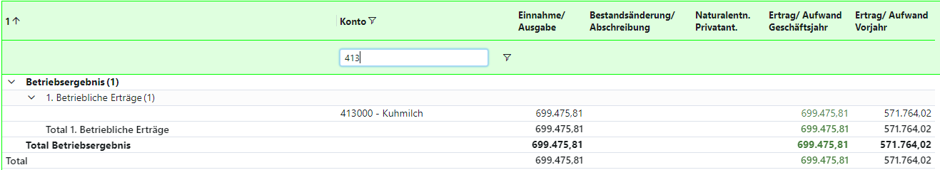 Beispiel: Betriebliche Erträge - Kuhmilch