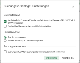 Die zuletzt genutzte Einstellung wird gespeichert und beim erneuten Aufruf der Buchungsvorschläge wieder angezeigt.