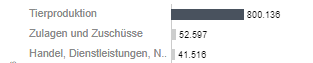 Der hierunter liegende Bereich ist beim Aufruf der Erfolgsrechnung zunächst leer. Hier können Sie sich die Ertrags- und Aufwandspositionen detaillierter anzeigen lassen. Beispielsweise interessiert es Sie, wie sich die Erträge der Tierproduktion aus dem begonnenen Beispiel zusammensetzen. Durch einen Mausklick auf den Text "Tierproduktion" oder den Balken daneben erfolgt die Darstellung der nächsten Detailebene im nächsten Anzeigebereich.