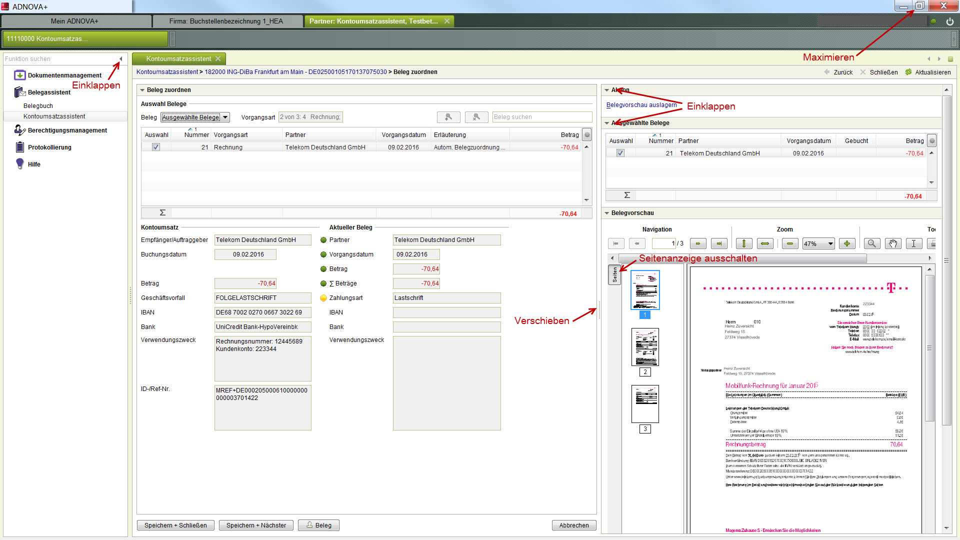 • Verwendung des Belegbuchs in ADNOVA+ für die Belegablage