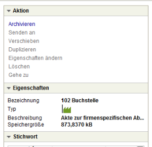 Im Dokumentenmanagement werden im Infobereich die Datei- bzw. Ordnergrößen angezeigt.