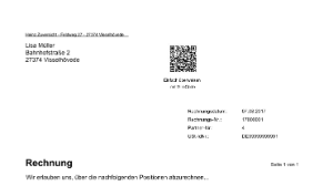 Es besteht die Möglichkeit einen GiroCode auf der Rechnung auszudrucken. Der GiroCode ermöglicht es dem Rechnungsempfänger schnell per App die Zahlung anzuweisen.