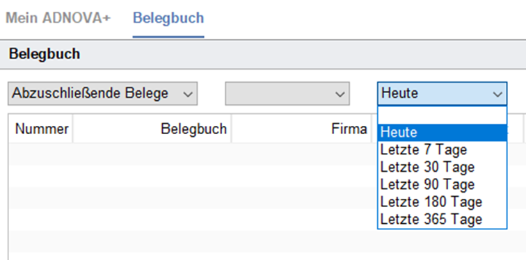 Insbesondere bei sehr großen Betrieben mit einer Vielzahl von Belegen ist dieser neue Filter eine komfortable Möglichkeit, die Anzeige der Belege sowohl im Belegbuch von ADNOVA+ direkt als auch zur Buchung in ADNOVA finance zu optimieren.