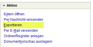 Über die Aktion Exportieren können einzelne Dokumente auf dem Rechner bzw. im Dateisystem gespeichert werden.