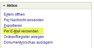 Dokumente können jetzt direkt über die Aktion Per E-Mail versenden an einen externen E-Mail-Empfänger versendet werden. Das Dokument wird automatisch als Anhang an die E-Mail angefügt.